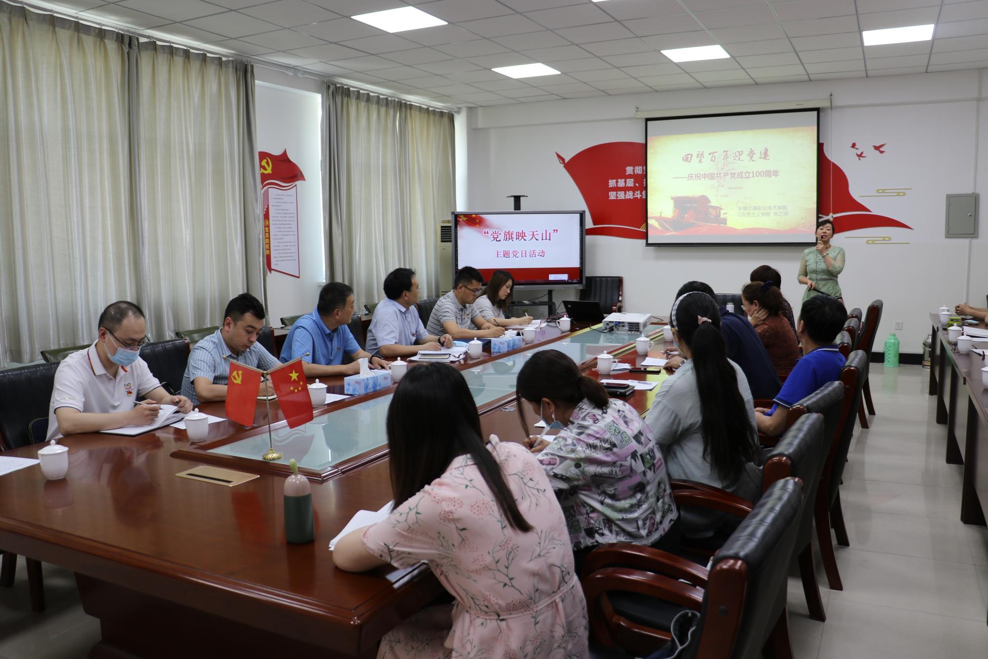 5月27日上午,自治区交通运输厅基层党建处、学院院领导、宣传思想政治教育党支部、机关第一党支部、鉴定培训教育党支部在继续教育学院五楼会议室开展了“党旗映天山”主题党日活动。