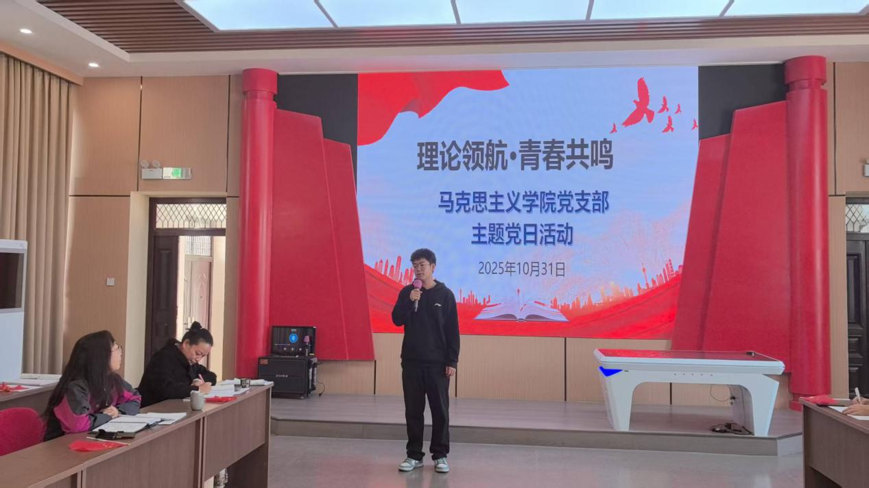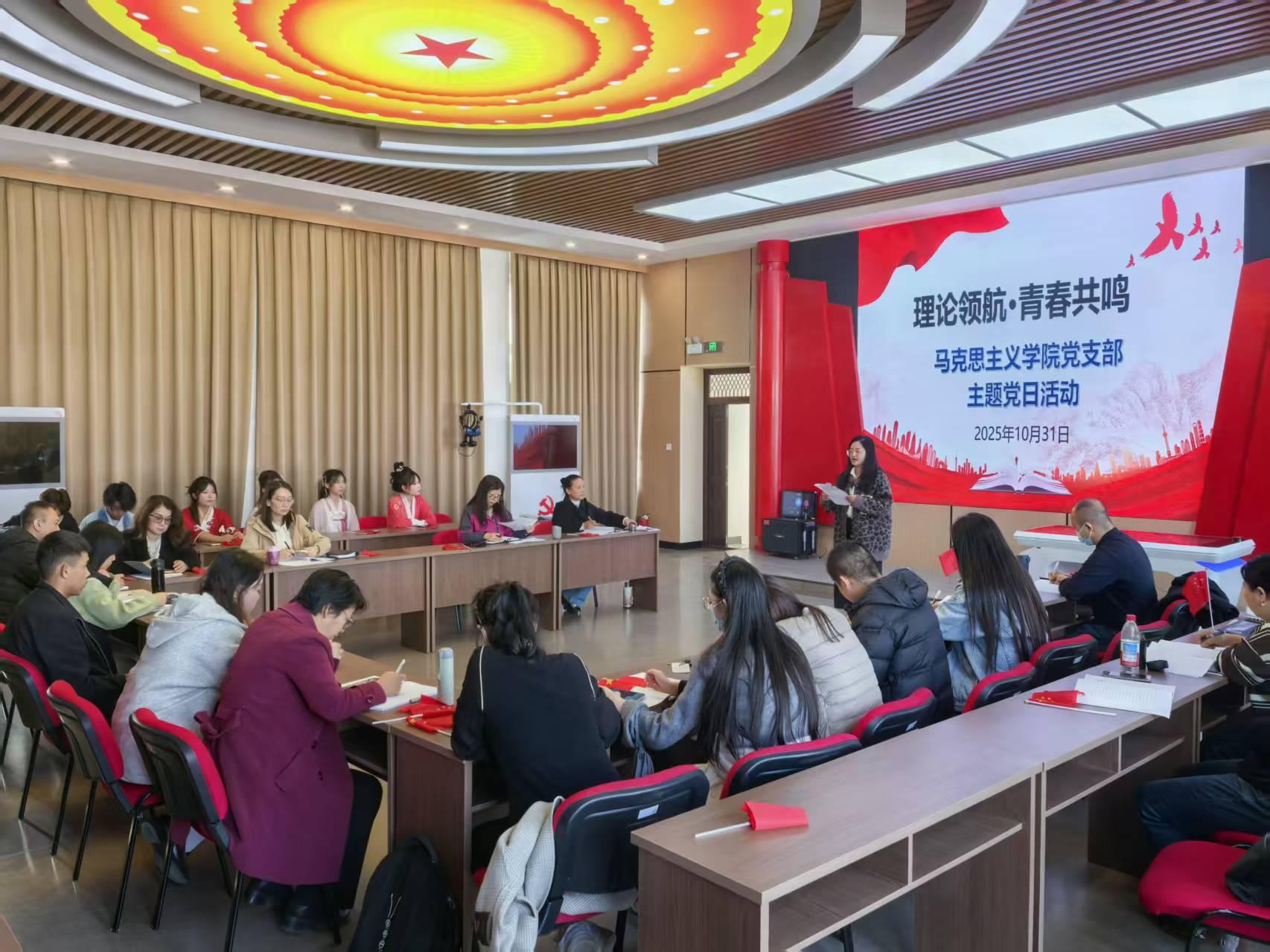 为进一步推动党的创新理论深入师生内心,搭建党员教师与青年学生共话成长的崭新平台,10月31日下午,马克思主义学院党支部组织开展了“理论领航 青春共鸣”主题党日活动。
