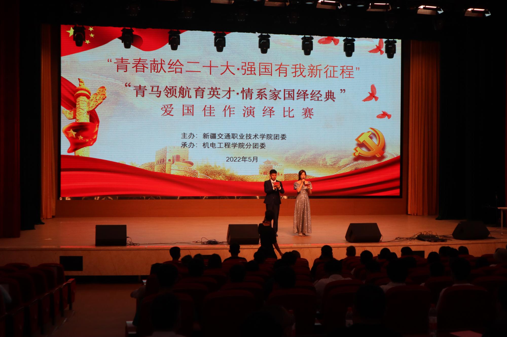 5月18日晚,由学院团委主办、机电工程学院分团委承办的“青春献礼二十大·强国有我新征程”爱国佳作演绎比赛在交院大礼堂成功举办。学院党委书记、副院长王瀚、学院党委副书记、纪委书记阿巴白克里·阿布拉、学院党委委员、副院长徐长江出席活动,中层领导及师生代表共同观摩了比赛。