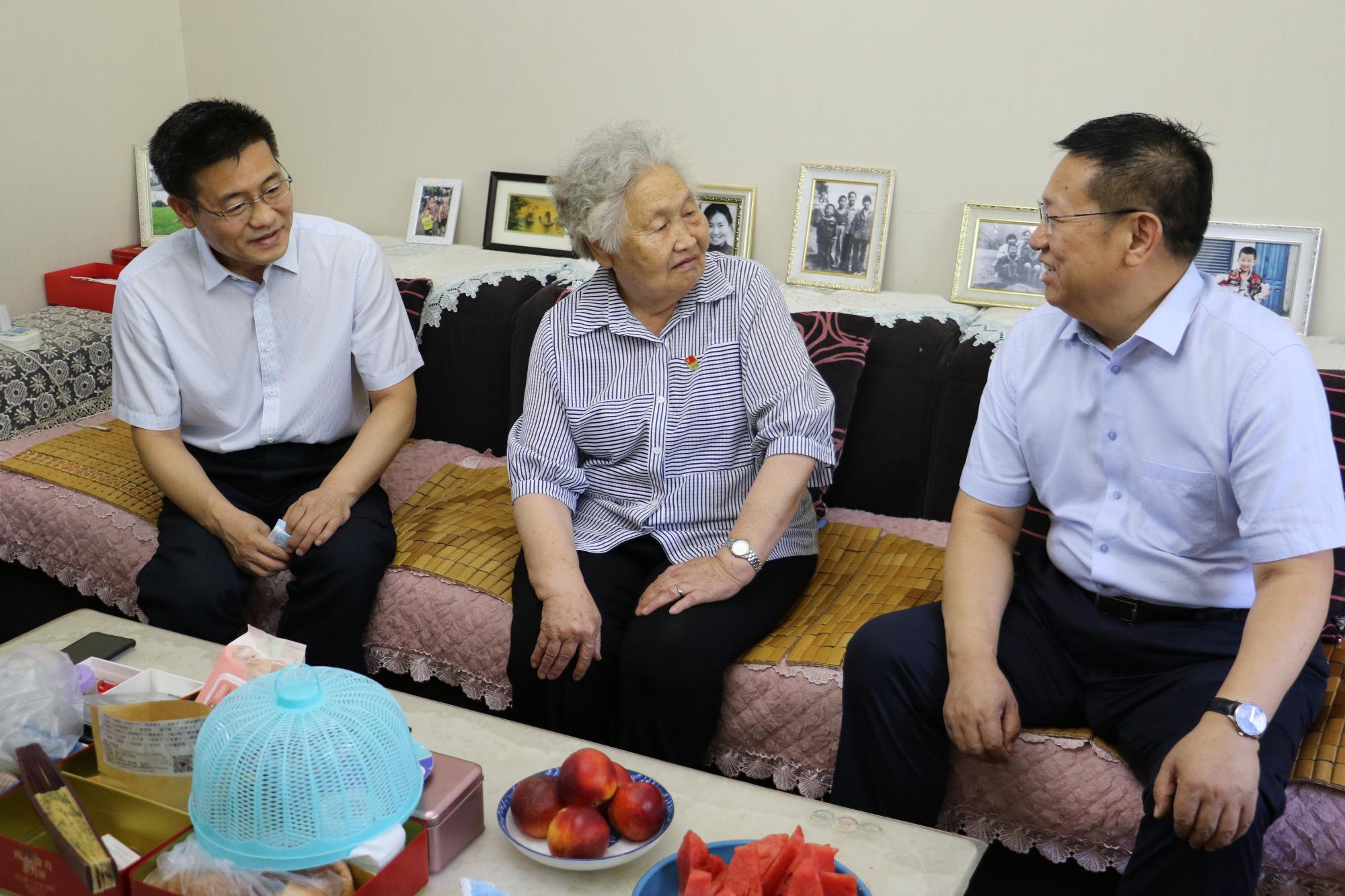 慰问组一行来到离退休老党员家中,与他们话家常、聊近况,了解他们的身体和生活情况,倾听他们讲述入党故事,重温艰苦年代的工作记忆。对他们为党的事业无私奉献表示敬意,叮嘱老党员们要保重身体,并希望他们积极建言献策,在未来继续关注和支持学院教育事业以及疆内交通事业的发展。
