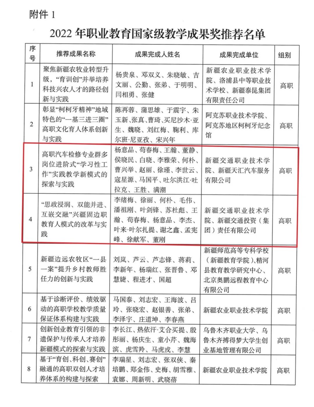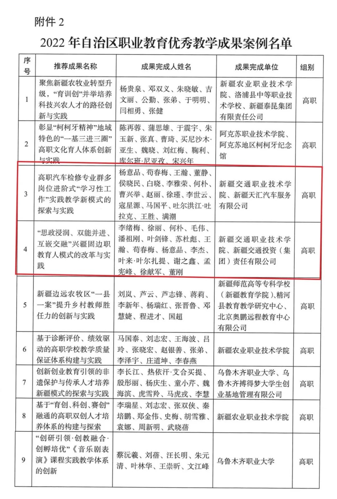 近日,自治区教育厅公布了2022年省级教学成果奖优秀案例获奖名单,高职汽车检修专业群多岗位进阶式“学习性工作”实践教学新模式的探索与实践、“思政浸润、双能并进、互嵌交融”兴疆固边职业教育模式的改革与实践两项教学成果案例荣获2022年自治区优秀教学案例,并推荐参评2022年职业教育国家级教学成果奖。