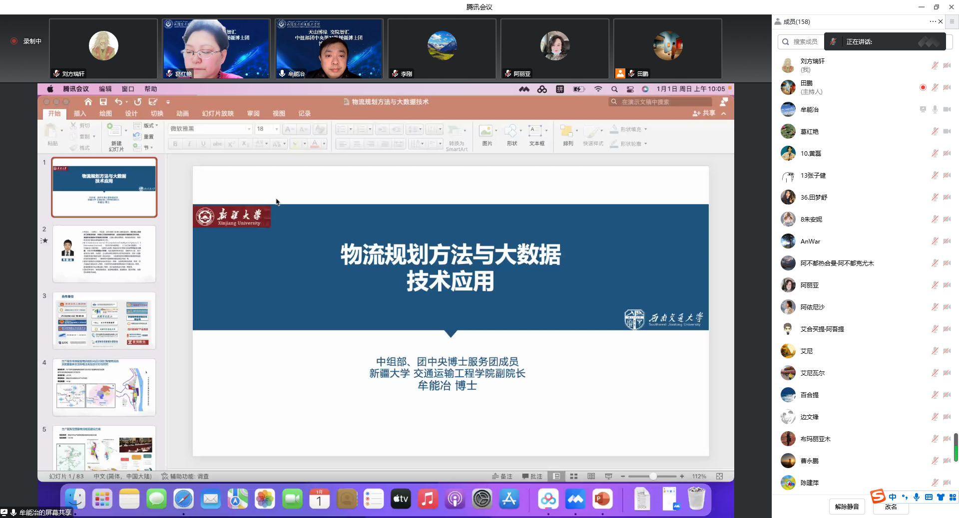 本次讲座立足服务新疆“一带一路”核心区、枢纽地带建设,以“物流规划方法与大数据应用”为主题,从物流与大数据相结合的角度切入,着眼于国家交通物流网络规划建设,详细论述物流系统规划理论体系,重点分析新疆物流业发展现状及前景,深入浅出地讲解了供应链协调、物流系统规划及优化等方面的知识,具有很强的理论指导性和实际操作性。