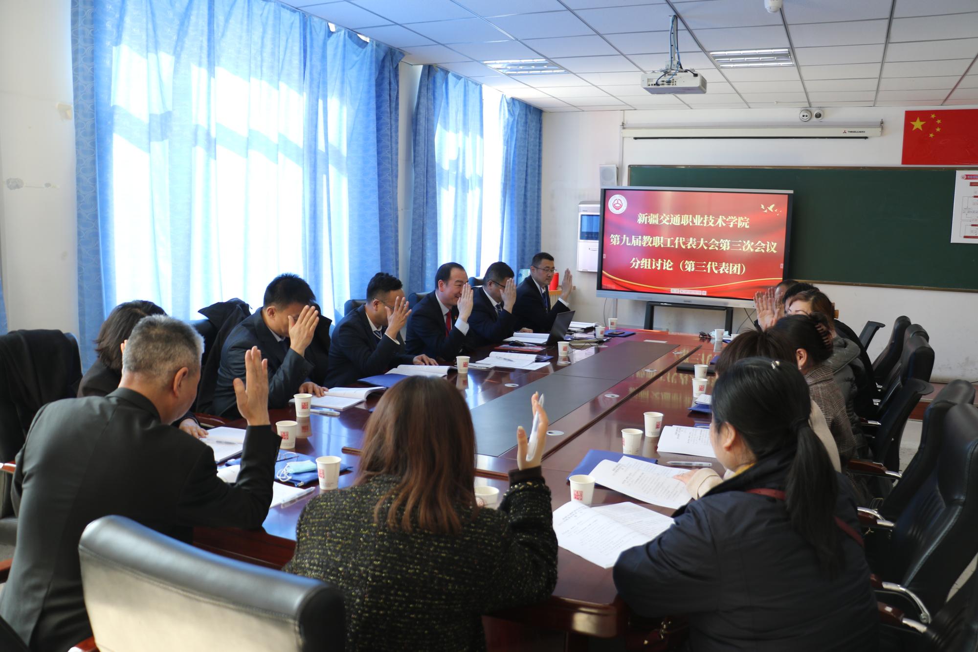 新疆交通职业技术第九届三次教职工代表大会会期为3月24日至25日,分为预备会、第一次全体会议、各代表团讨论审议、主席团会议、第二次会议五个阶段。正式代表97人、列席人员6人,共103位代表出席会议。