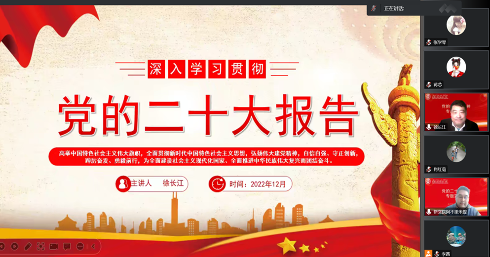 为深入贯彻落实党的二十大精神,推动党的二十大精神学习宣传贯彻工作走深走实,12月22日—27日,学院党委班子成员线上开展了学习宣传党的二十大精神系列宣讲。