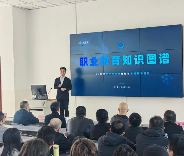 会上,钱海经理以职业教育的视角,从国家的政策背景出发,深度解读和剖析了教育数字化背景下知识图谱的建设与应用。他指出在数字化3.0的时代,构建具有职教特色的知识创新中心是非常必要的教学成果,并以案例呈现的方式详细讲解了知识图谱在教学当中的应用场景,让现场的老师们在了解前沿教育技术的同时,对知识图谱有了更加深刻的认知。