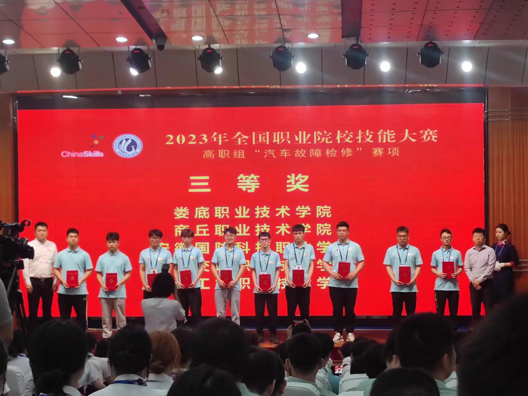 近日,2023年全国职业院校技能大赛高职组“汽车故障检修”赛项在山东交通职业学院正式开赛。来自全国31个省市、自治区和新疆生产建设兵团的67支队伍参赛。我院参赛队BEAT365英国官网马福雍、贾庆武两位同学喜获高职组“汽车故障检修”赛项三等奖。