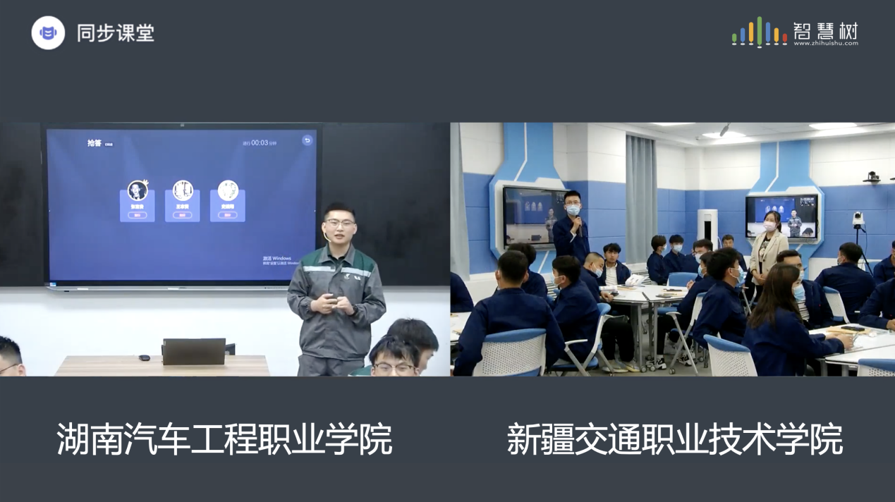 会后,来自湖南汽车工程职业学院的欧弘飞与童大权老师分别开展了《新能源汽车认知与安全防护》《机械设计基础》课程的授课,在同步课堂平台进行线上线下的同步学习和实时互动。课上学们认真听讲,积极提问,踊跃回答问题,课堂气氛热烈。两位教师课堂内容丰富、思路清晰、深入浅出的讲解令同学们难忘。