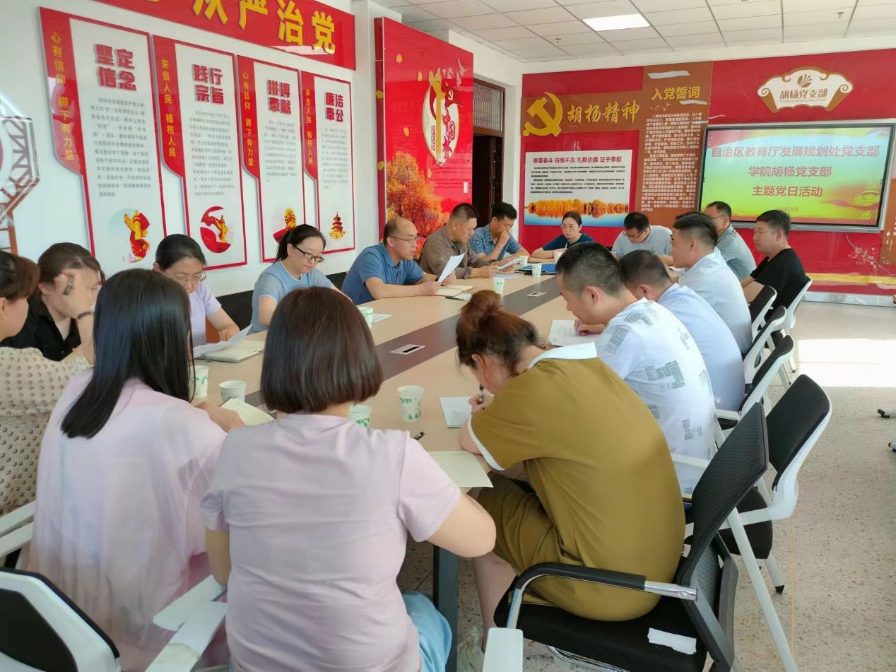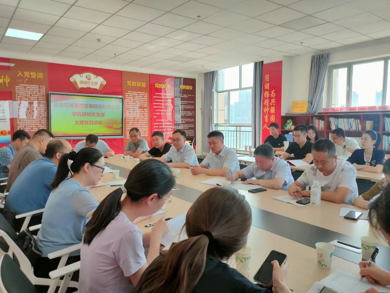 2023年6月21日,自治区教育厅发展规划处党支部与学院机关第三党支部联合举办了主题为“深化产教融合 集聚发展动能”主题党日活动。学院党委书记王瀚同志参加了此次联合主题党日活动。