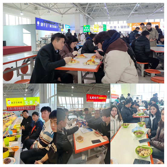 午餐时间,机电工程学院结对子师生在一号餐厅二楼一起用餐,教师们了解学生对饮食需求、饭菜质量、环境卫生等方面的意见建议,增强学生的亲近感和信任感,引导学生养成健康的饮食习惯。学院党委书记王瀚详细了解了同学们思想生活情况,征询同学们对学院管理意见和建议,勉励他们珍惜时光,努力学习,掌握扎实技能,为家乡的发展贡献自己的力量。