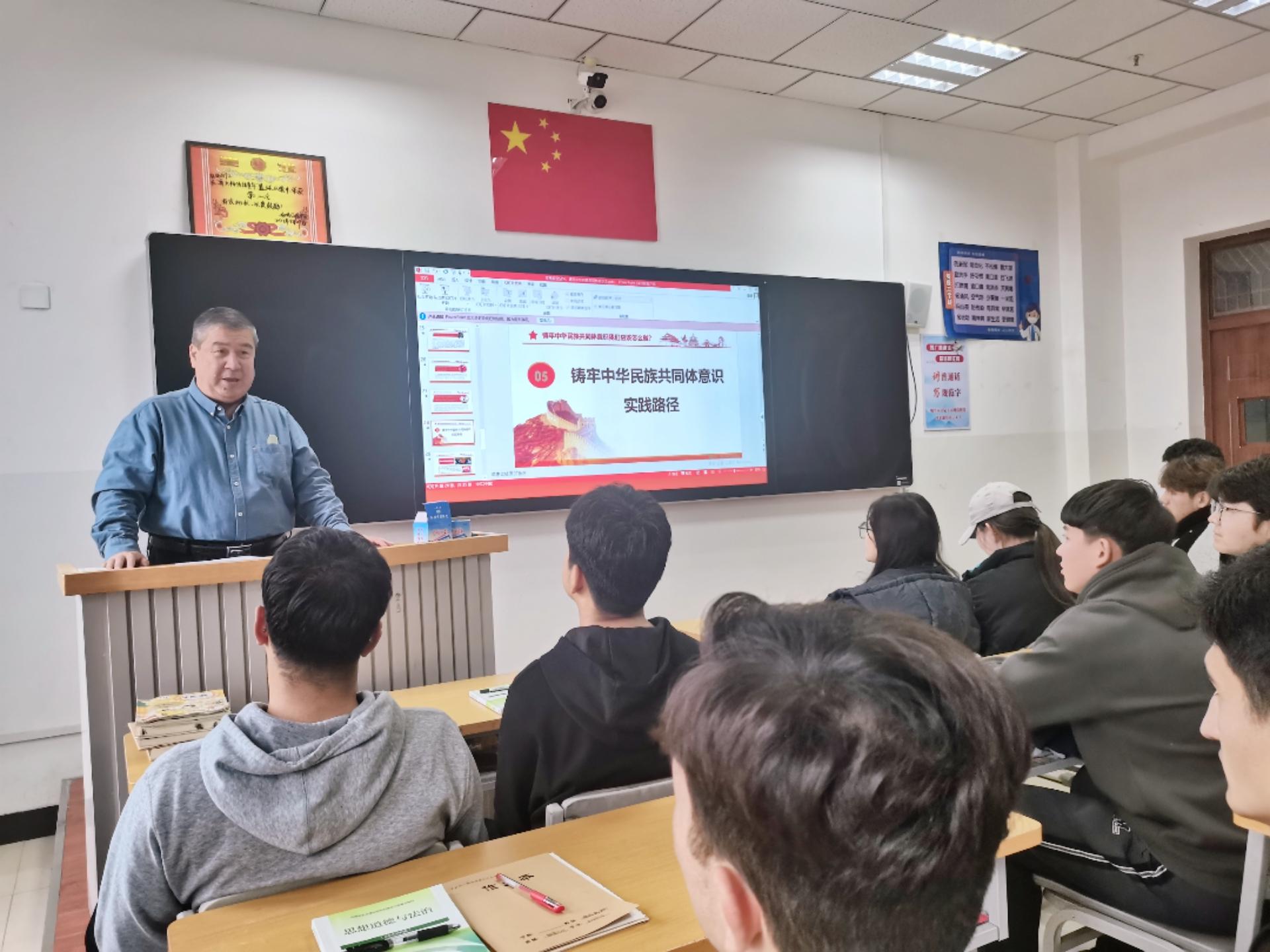 阿巴白克里·阿布拉从什么是中华民族共同体意识、为什么要铸牢中华民族共同体意识、铸牢中华民族共同体意识我们应该怎么做等三个方面给同学们解读了铸牢中华民族共同体意识的深刻内涵和特征、理论渊源和历史进程,铸牢中华民族共同体意识的重大意义和实践路径。引导青年学生要坚定理想信念、爱党爱国、勤奋学习和培养创新思维。