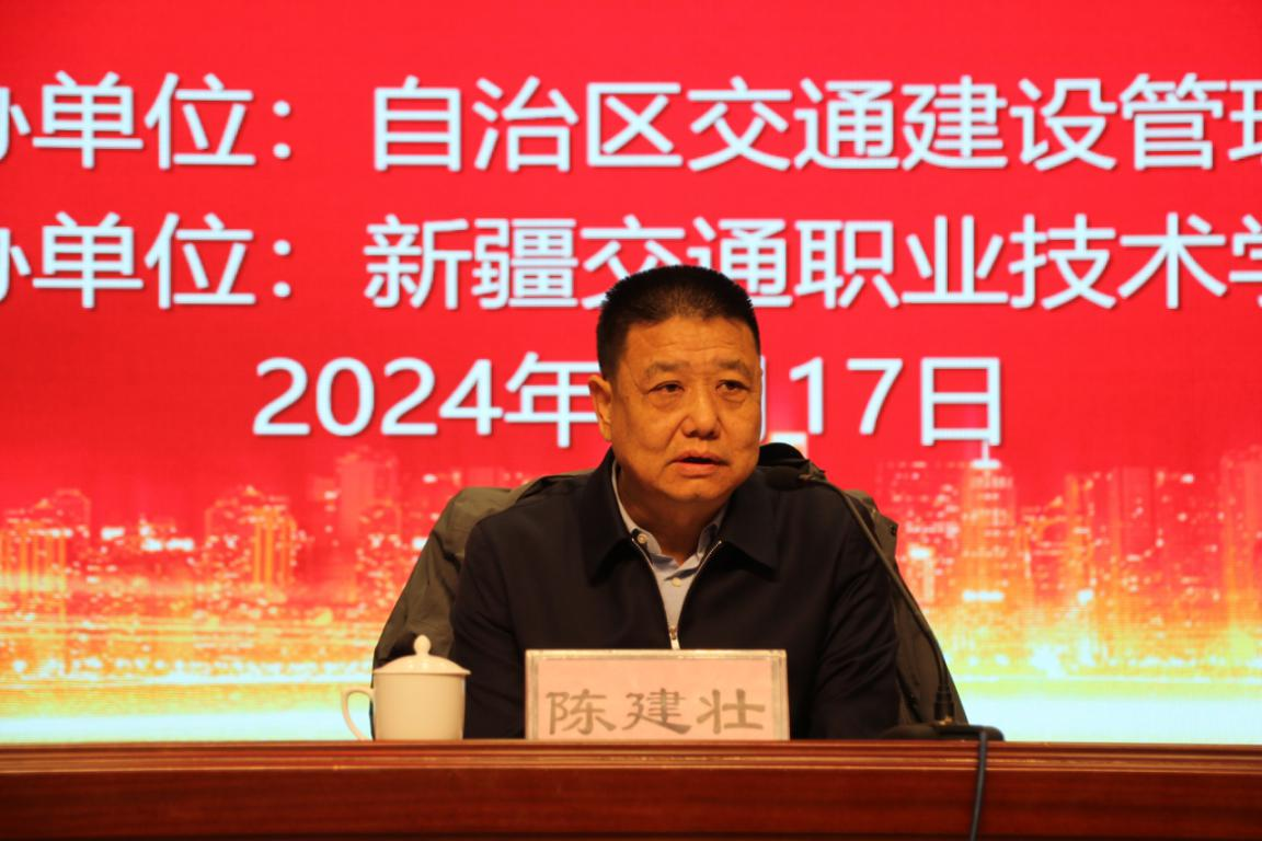 自治区交通建设管理局党委副书记、局长陈建壮出席开班仪式并讲话。新疆维吾尔自治区交通建设管理局安全质量监督处处长张斌主持开班仪式,新疆交通职业技术学院党委书记、副院长王瀚致欢迎词。