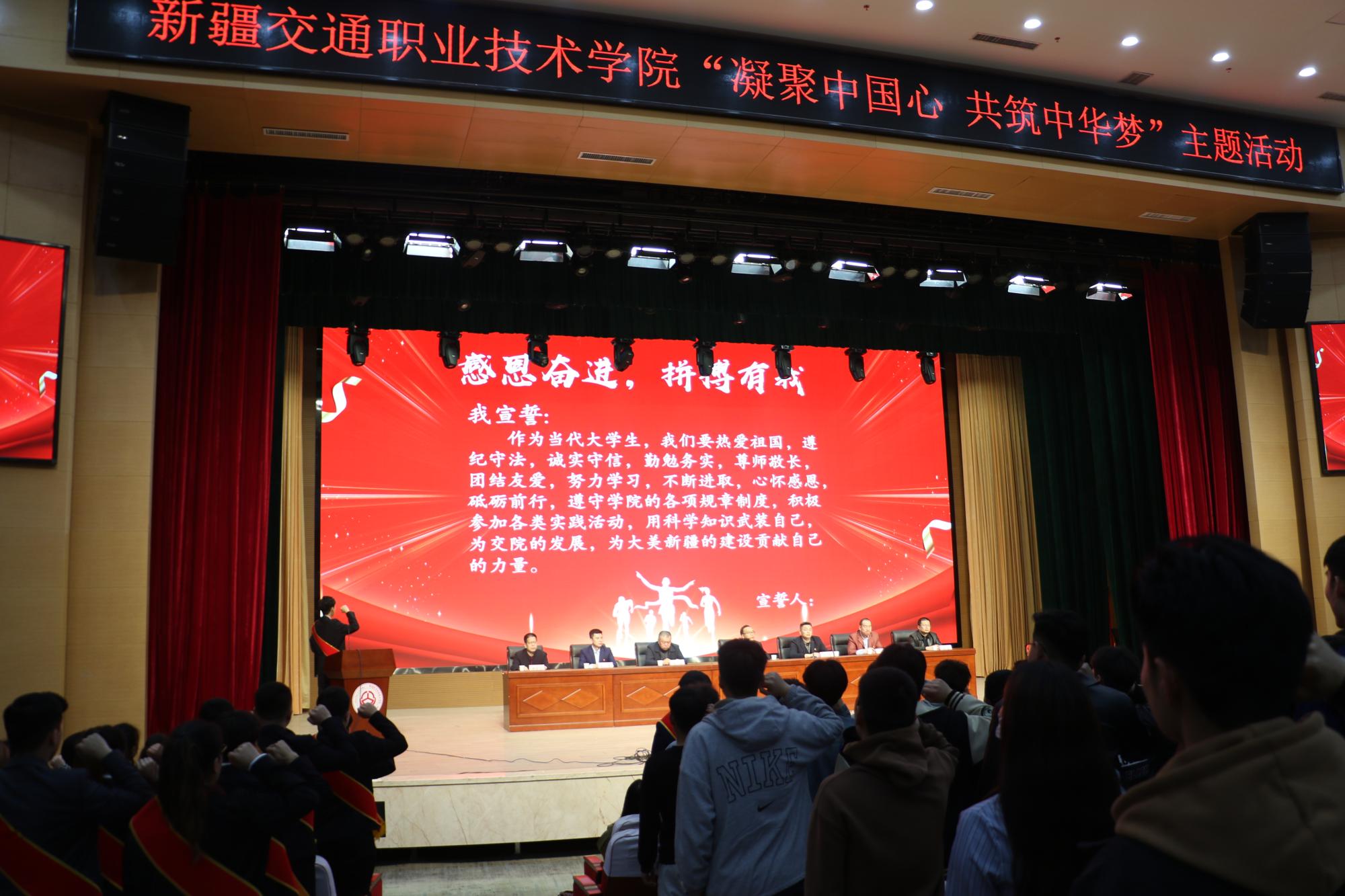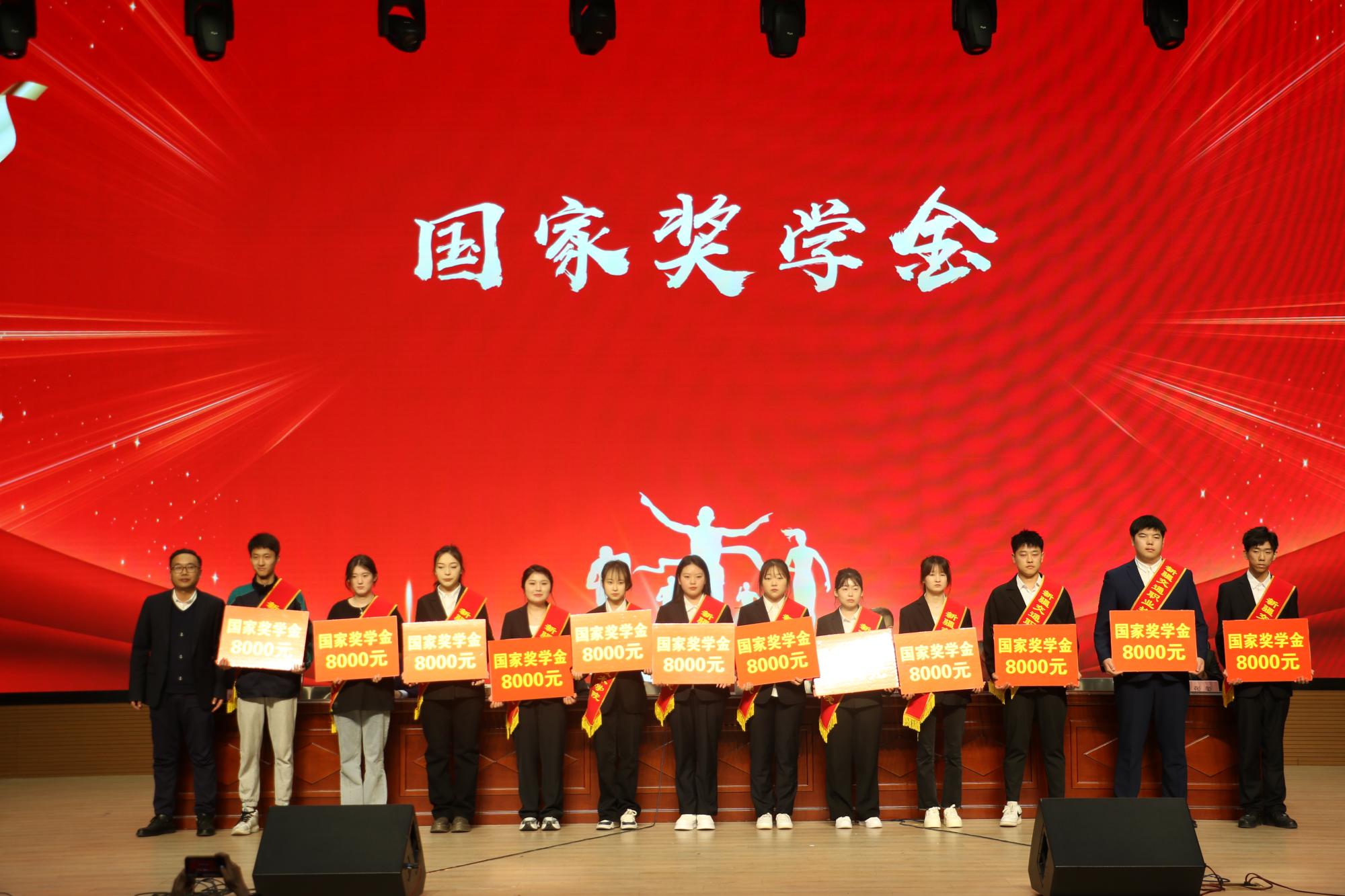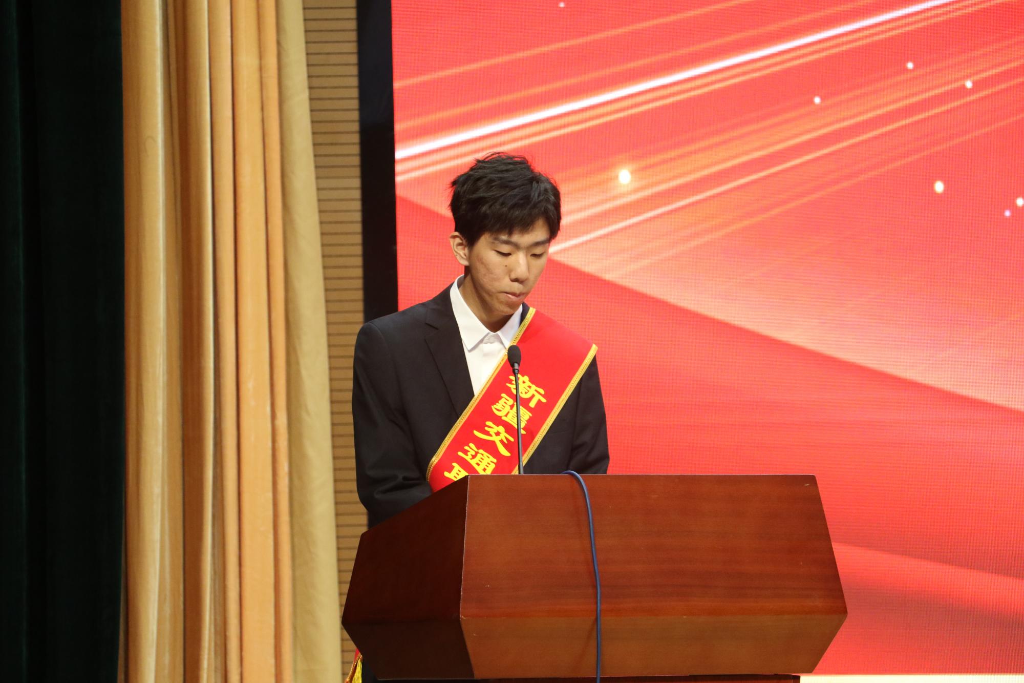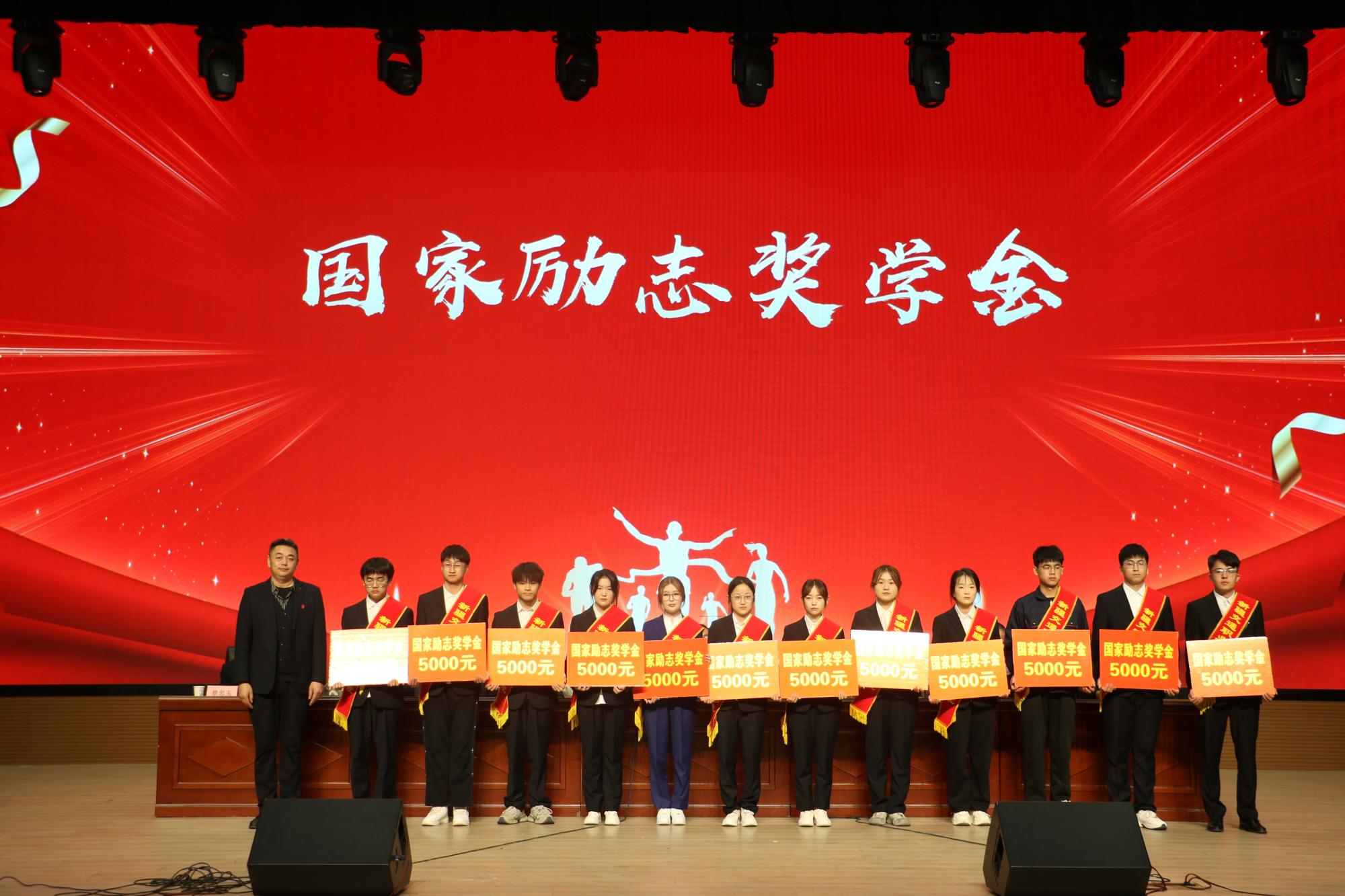 在庄严而热烈的氛围中,获奖学生走上台接受表彰,国家奖学金获得者魏云彬同学代表获奖学生发言,分享了自己在学习中的体会和感悟,表示获得奖学金不仅是对自己努力的肯定,更是对未来的一种鞭策,今后将继续保持学习的热情,不断提升技能,在奋斗中彰显青春力量。随后,魏云彬同学带领全体学生进行了“感恩奋进,拼搏有我”的主题宣誓。