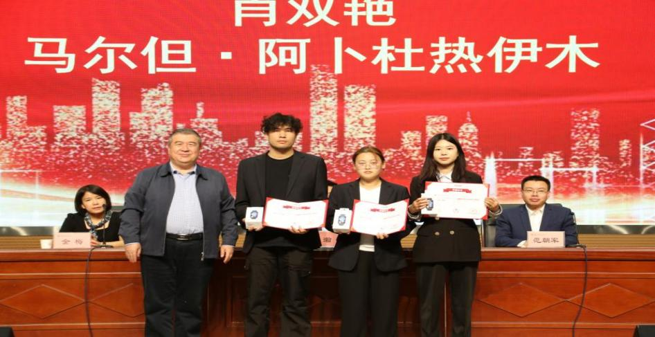 阿巴白克里·阿布拉为人工智能工程学院刘倩、马尔但·阿卜杜热伊木、肖双艳三位同学颁发了华为ICT大赛2023-2024国赛云赛道三等奖。获奖代表刘倩说:“非常感谢学院的培养以及华为大赛平台给了我这次机会,也希望以后能在华为ICT大赛中取得更好的成绩。”