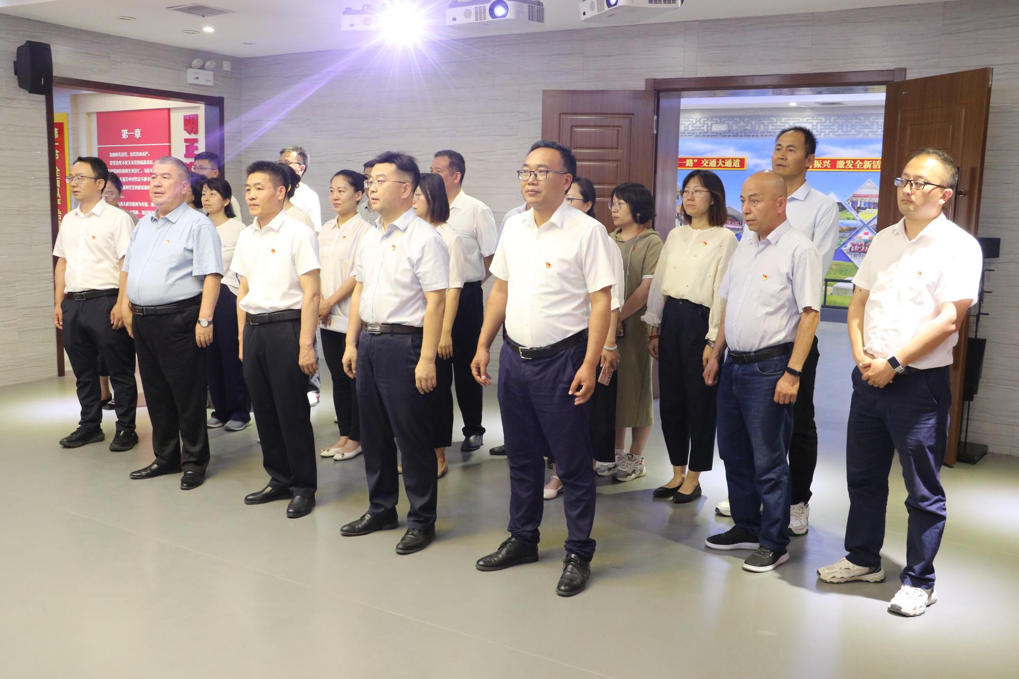 参观结束后,在党委书记王瀚的带领下,党员干部面对党旗,郑重地重温了入党誓词。铮铮誓言,铿锵有力,长鸣耳畔,再次唤醒了作为共产党员的初心和使命。大家纷纷表示,要牢记誓言,践行承诺,时刻保持清醒头脑,始终绷紧廉洁自律这根弦,知敬畏、存戒惧、守底线,以身作则,加强党性修养,增强拒腐防变意识,在党纪学习教育中铸牢政治品格、夯实思想根基、锤炼过硬本领。