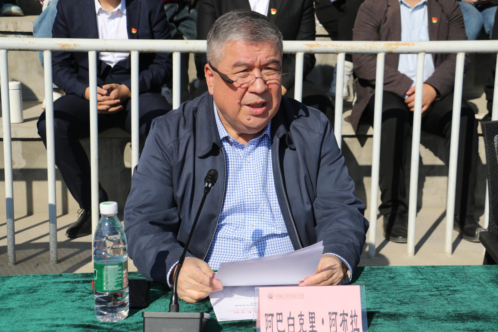 活动在雄壮的国歌声中拉开序幕。学院党委副书记、纪委书记阿巴白克里·阿布拉对全体新生表示了热烈的欢迎和衷心的祝贺,他寄语同学们,要志存高远,涵养“少年自有凌云志,不负黄河万古流”的志气;要奋勇向前,磨砺“百舸争流千帆竞,波涛在后岸在前”的勇气;要挺膺担当,胸怀“计利当计天下利,泰山压顶不压腰”的豪气,坚定理想信念,练就扎实本领,为交通运输事业及新疆发展贡献力量。