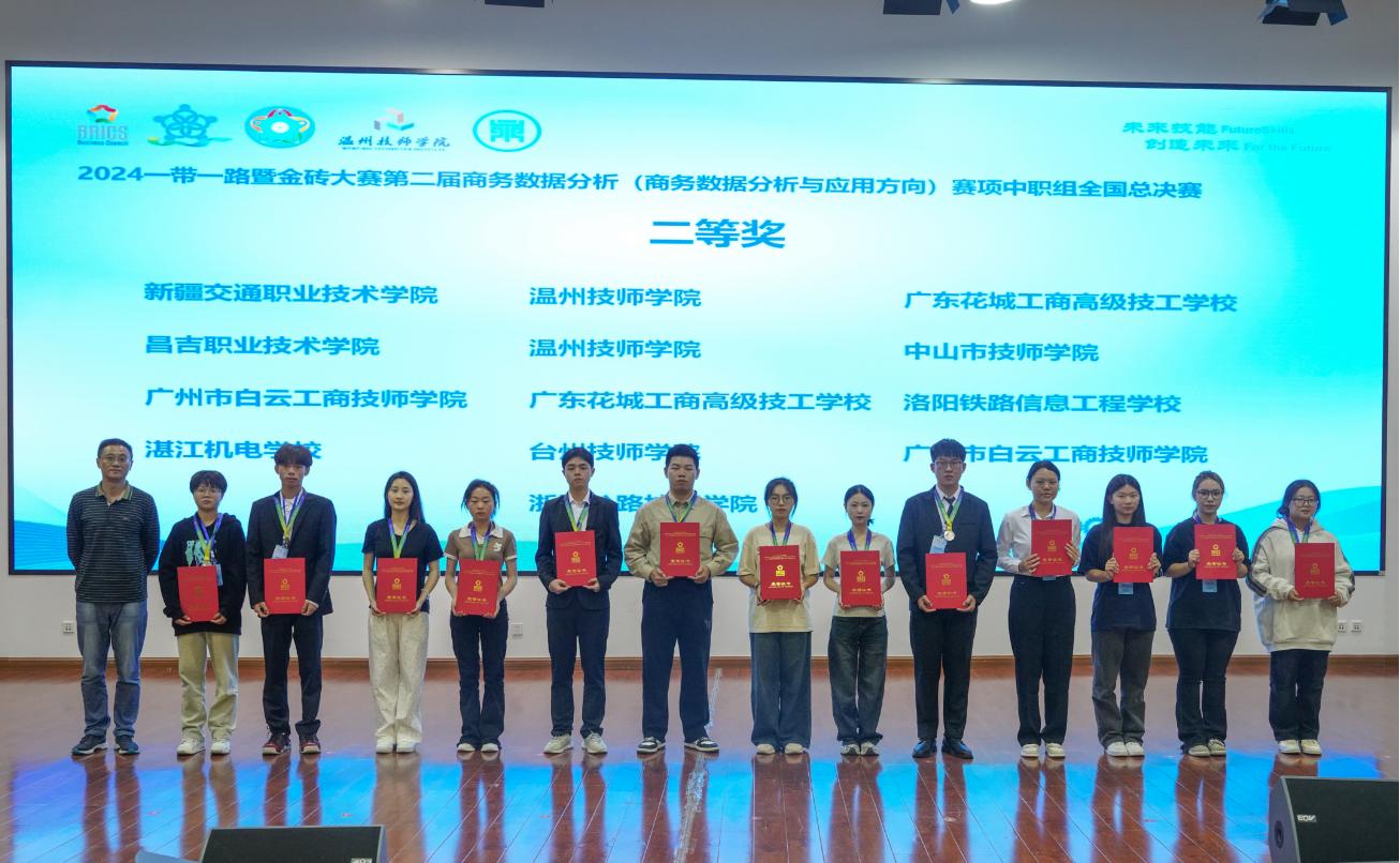 共聚千年商港,共话数字未来。10月11日至13日,2024一带一路暨金砖国家技能发展与技术创新大赛第二届商务数据分析(商务数据分析与应用方向)赛项全国总决赛在温州技师学院成功举办,我院胡文婷同学代表学院出战并斩获全国二等奖。