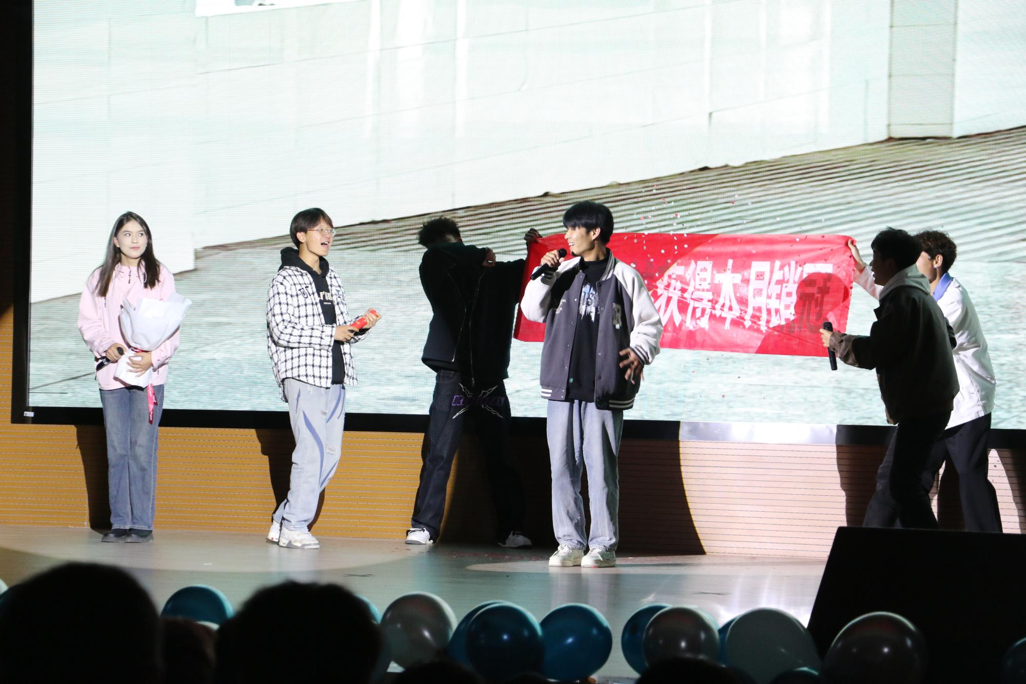 除了精彩的文艺表演外,晚会还安排了互动环节,包括现场扫码抽奖、拍拍操等小游戏,增加了晚会的趣味性和互动性,使新生们更加亲近彼此,感受到了大家庭般的温暖。