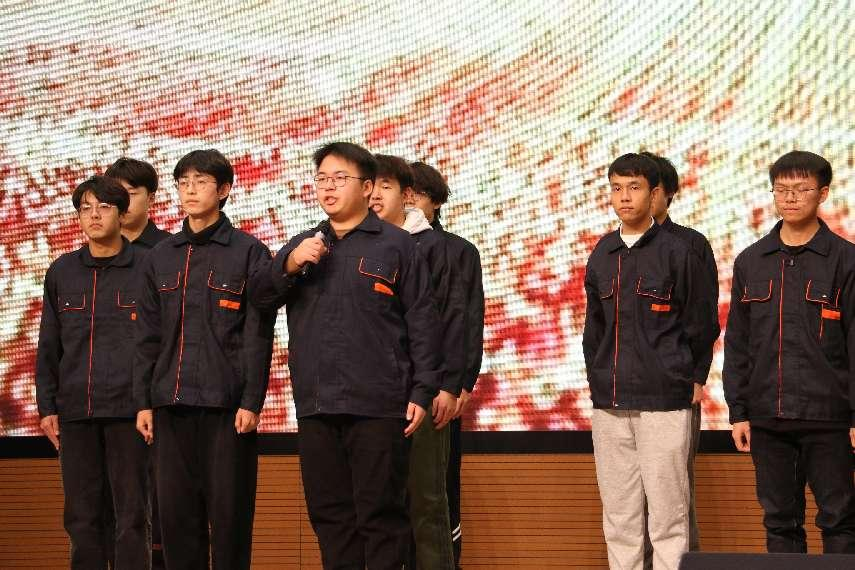 决赛现场,选手们或深情朗诵,或激情演绎,不仅拥有扎实的诵读功底,更在演绎形式和内容上进行了大胆创新,力求展示中华经典文化的独特魅力。其中,道路桥梁工程学院道桥D241班的《青年的担当》凭借其深情饱满、激昂有力的朗诵,以及鲜明深刻的主题内容,赢得了评委与观众的高度赞誉,最终荣膺大赛桂冠。该作品深刻揭示了青年一代的责任与使命,充分展现了新时代青年的风貌与担当。
