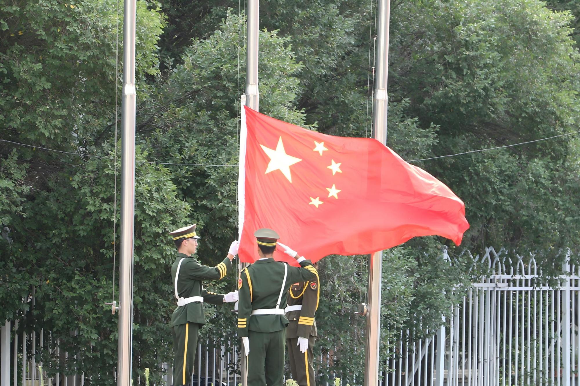 仪式在铿锵步伐中拉开序幕,伴随着《义勇军进行曲》激昂旋律,全体师生肃立注目,凝视鲜艳的国旗迎着朝阳冉冉升起,齐声高唱国歌,表达着对伟大祖国的深深热爱和对党的崇高敬意。