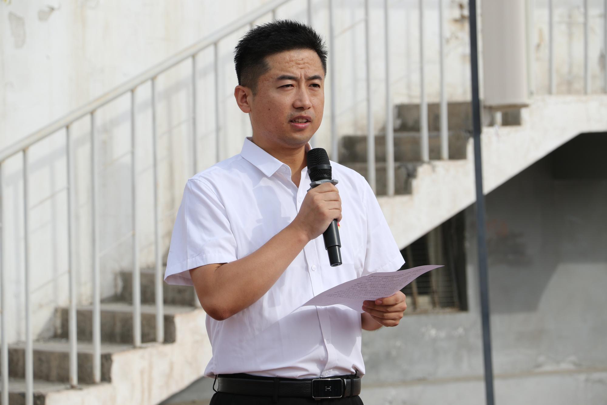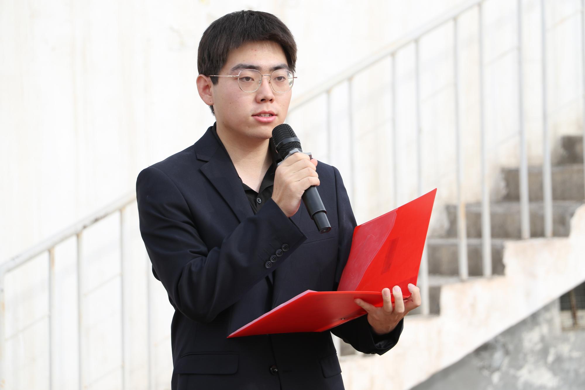 教师代表高龙跃在国旗献词中表示,将坚守党的教育事业初心,深耕三尺讲台,培育有理想、敢担当、能吃苦、肯奋斗的新时代青年,让红色基因在育人中薪火相传。学生代表杨鑫山深情表达对党的感恩,誓以“请党放心,强国有我”的青春誓言,在复兴征程中锚定奋斗方向,镌刻有志青年的奋斗足迹。