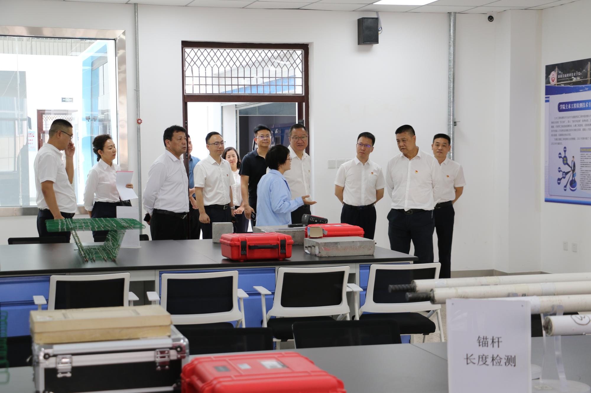 调研组一行深入校园各区域,全面考察校园功能布局、实训条件、暑期安全工作、开学准备和后勤服务保障工作,针对发现的问题与薄弱环节,提出具体改进意见;在学生公寓,细致查看住宿环境,就进一步优化新生住宿安排等提出意见建议;在学生处,听取了学生管理服务、思想政治教育和心理健康教育等方面的汇报;在图文信息中心,实地察看了信息化服务及智慧校园平台运行情况;在继续教育学院,了解学院在职业培训、社会服务方面的工作,要求多措并举增强社会服务能力;在道路桥梁工程学院,深入土木实训楼,详细了解实训中心运行和人才培养情况。
