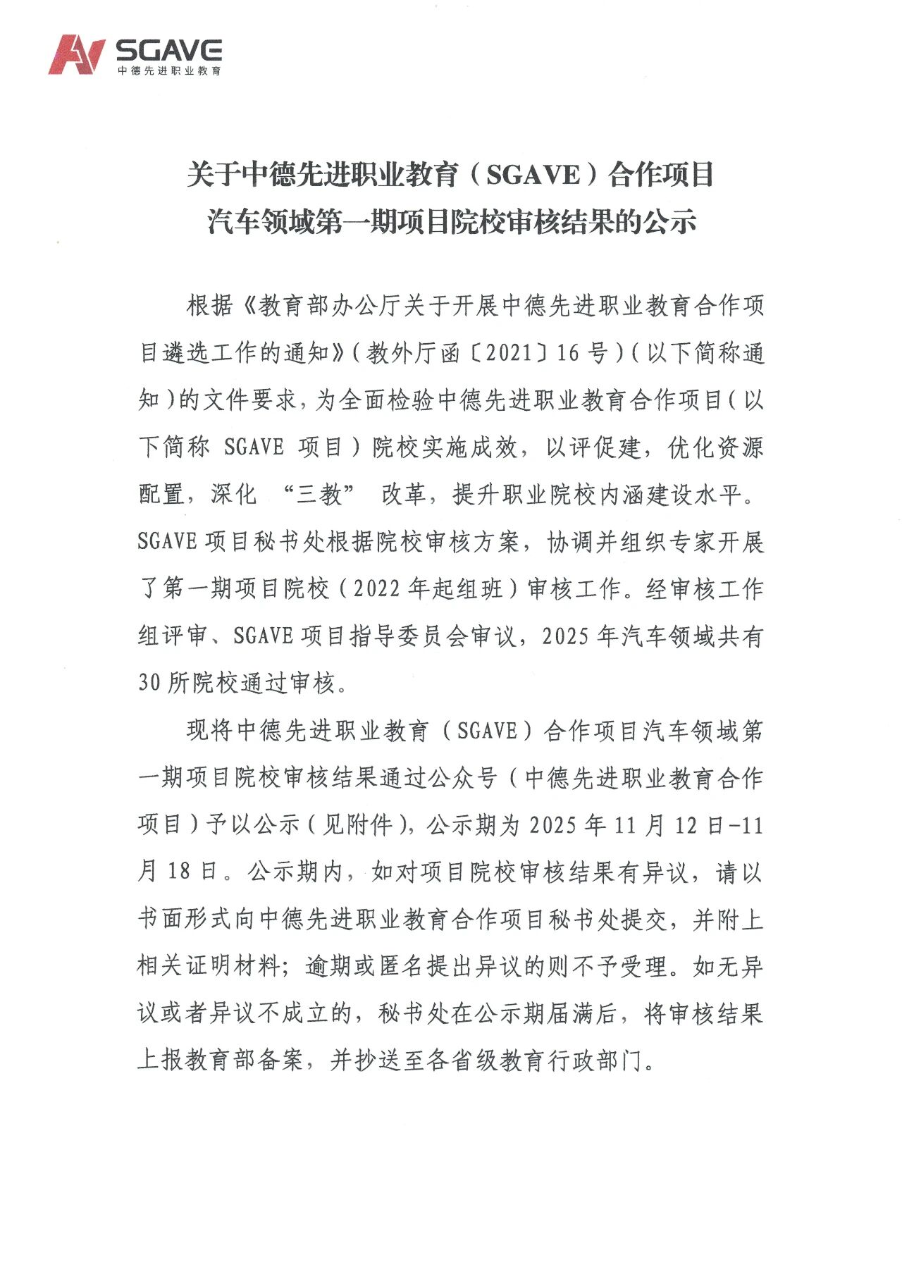 近日,中德先进职业教育(SGAVE)合作项目秘书处公布第一期院校审核结果,学校新能源汽车检测与维修技术专业历经三年建设,顺利通过审核,标志着学校在职业教育国际化办学领域取得阶段性重要成果。