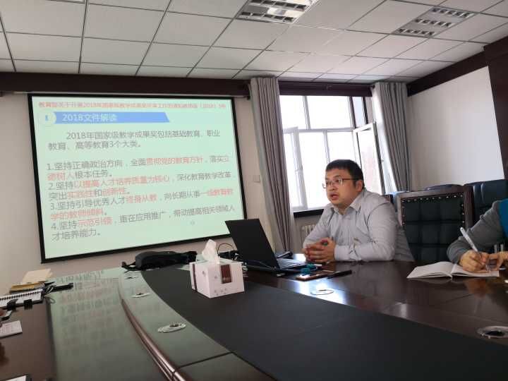 为推动我院教学科研工作更上一个台阶,做好2018年国家级教学成果奖的申报工作,3月19日下午,学院副院长、来自浙江交职院的援疆教师戎成作了教学成果奖申报专题辅导培训,学院副院长李绪梅、科研处及各二级学院领导、项目负责人等相关人员参会。