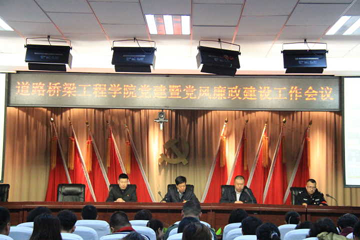 3月23日下午,道路桥梁工程学院2018年党建暨党风廉政建设工作会议在图书馆四楼多功能厅召开。学院党委副书记、院长段明社出席会议并讲话,分院全体教职工、学生党员参加了会议。会议由道路桥梁工程分院院长李杰主持。