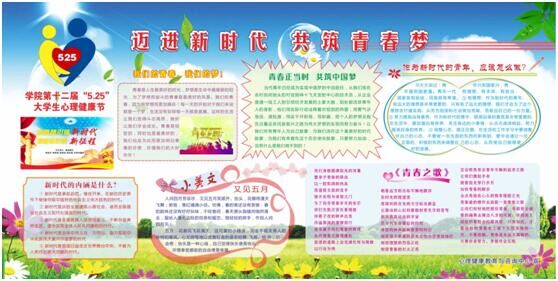 在阳光灿烂的花季五月,学院迎来了十二届“5·25”大学生心理健康节。“5·25”旨在爱自己、爱他人、爱社会、爱祖国,凝聚青春力量,共筑青春梦想!