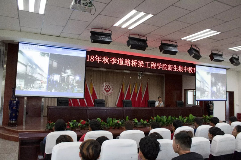 为进一步加强2018级新生对学院各项工作的了解,增强学生的消防安全意识。道路桥梁工程学院于8月30日在图书馆举办2018级新生集中教育讲座。乌鲁木齐公益消防知识宣传中心的张利军教官、分院党总支书记李刚、学生发展中心主任邵强、辅导员王茜、学生党建负责人曹静参加本次讲座。