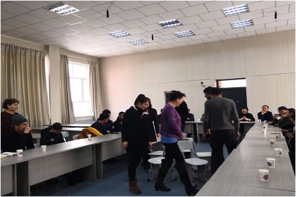 支部委员潘杰处长进行“民族团结一家亲”主题宣讲,以真实的案例生动阐释了自古以来新疆各族同胞不分你我、亲如兄弟、携手共建家园的精神风貌。在谈感悟环节中,教师代表及结对学生代表一起分享了彼此点点滴滴的感动与收获;结对师生“抢凳子”趣味游戏中,歌声、笑声、掌声串联在一起,呈现一派欢乐祥和的景象和喜迎新春的愉悦之情;在教师送寄语环节中,支部委员潘飞希望各族师生在生活、工作、学习中相互了解、相互包容、相互欣赏、相互学习、相互帮助,形成人人讲民族团结、人人维护民族团结,人人争做民族团结模范的良好氛围。来自安徽交通职业技术学院援疆教师汤峰结合在学院工作的感受,深有感触地说:“民族团结一家亲”、“三进两联一交友”活动带给他温暖与感动,深切的寄语感染了在场的师生。