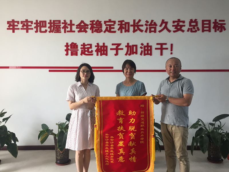 锦旗虽轻,情义很重,既代表了英吉沙县苏盖提乡党委、人民政府及各族群众对学院在脱贫攻坚所做工作的浓浓感激之情,也是对学院在助力脱贫攻坚、发挥单位后盾作用的肯定和鼓励。学院将再接再厉,继续发挥学院在师资、设备、技术技能培训等方面的优势,举全院全员之力助力脱贫攻坚,力求取得新突破、新成效。