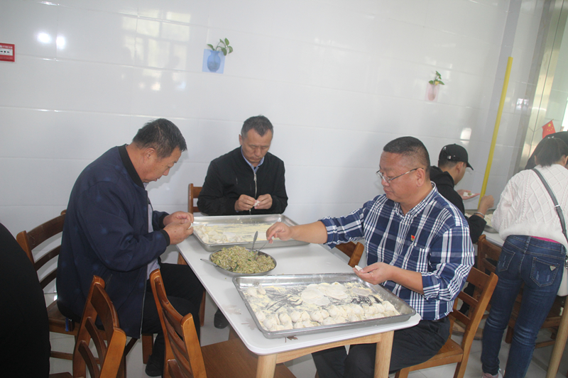大家自发采购了包饺子的原材料,进了敬老院,大家都开始忙活起来,有的剁馅、有的和面、有的擀皮,老人们和支部成员们一起包着饺子,拉着家常,每个人脸上都洋溢着开心的笑容。
