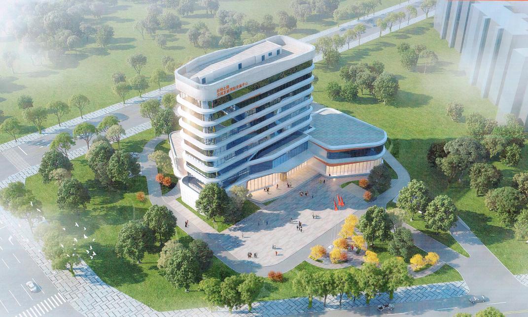 图4 人工智能与智慧交通楼效果图与现场施工图