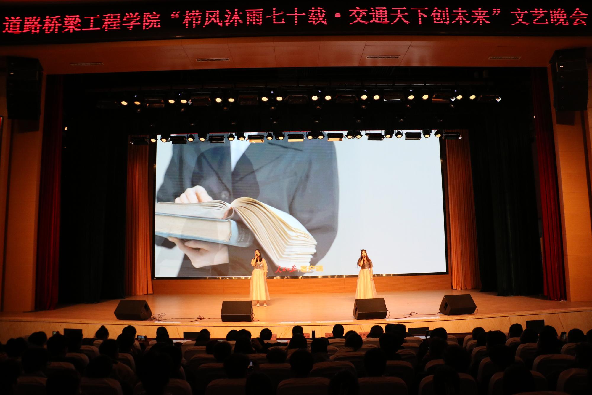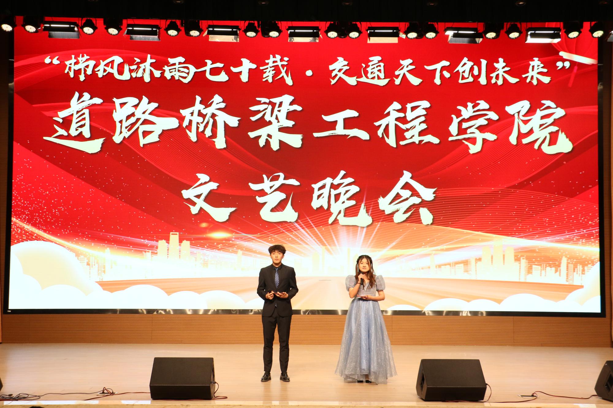 在秋已尽,冬将至的日子里。11月16日晚自习,道路桥梁工程学院在产教楼礼堂举办“栉风沐雨七十载•交通天下创未来”文艺晚会,全院师生代表在这里欢聚一堂,一同观看演出,共享文化盛宴。