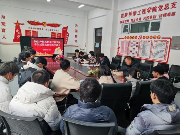12月20日下午,道路桥梁工程学院在土木楼三楼会议室召开2023年道路桥梁工程学院学生技能竞赛交流座谈会。会议由道路桥梁工程学院党总支副书记、院长郭社锋主持。