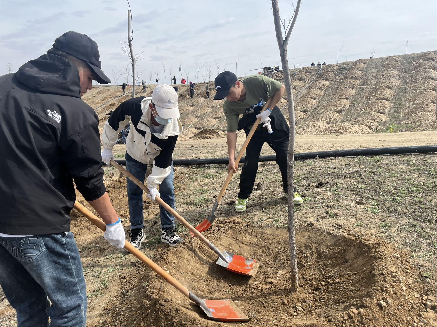 为推进生态文明建设精神,4月14日上午,经学院爱委会组织人工智能工程学院前往东绕城高速路段米东段义务植树。