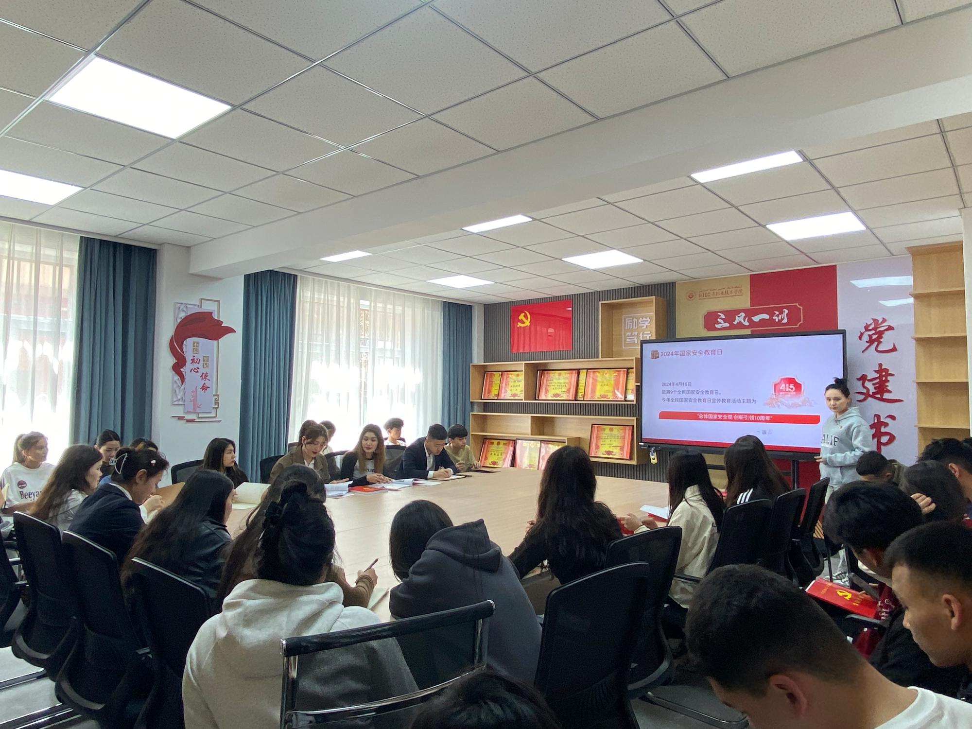 主题党日活动以集中学习的方式开展,学生党员阿娅拉·吉盖带领学生党员及入党积极分子对今年全民国家安全教育日宣传教育活动主题、当前国际国内形势、危害国家安全罪相关法条等内容进行学习,并对大学生应当如何维护国家安全进行了讨论。