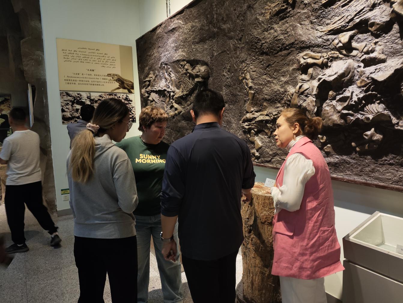 当全体师生步入新疆地质矿产博物馆的那一刻,一股浓厚的历史与自然的气息扑面而来。在新疆地质矿产博物馆,全体师生在工作人员的带领下分别参观了宇宙地球厅、生命演化厅、金属矿产厅、非金属矿产厅、能源厅、宝玉石厅、旅游地质-环境地质厅等七个展厅,上万余件矿物、岩石、矿石、动植物化石标本,通过声光电、虚拟动态场景等方式向师生们展示了生命起源和发展、地质环境风貌变化。党员老师们结合学院学科专业特点,向随队入党积极分子、学生代表介绍了新疆的地理位置、历史文化、风土人情以及交通行业的发展趋势,同学们听得津津有味,全面深入地了解了新疆古老神奇的地质地貌演化史以及新疆生物古老性、典型性和多样性等特点。加强了师生之间的交流,进一步帮助同学们明晰了作为交通人的责任和使命。