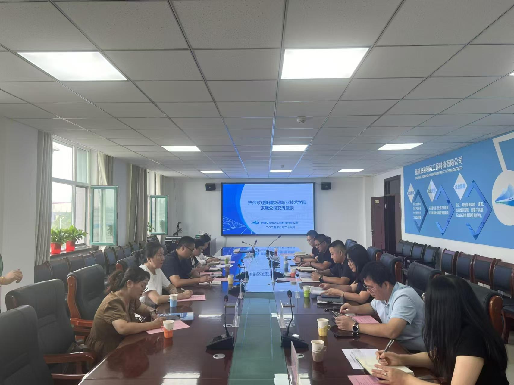 为了更好地了解交通基础设施建设行业试验检测技术发展动态和人才需求情况,8月26日,道路桥梁工程学院院长曹永鹏带领土木工程检测技术专业团队张玲、郭娟、赵丽萍、兰宇杰四位老师到新疆交勘致远工程科技有限公司调研。