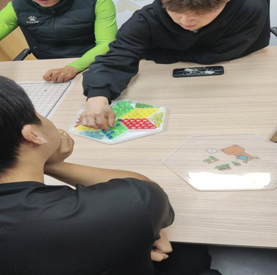 在跳棋比赛区域,同样精彩纷呈。棋者,局也。布局者,智也。彩色的棋子在棋盘上灵活跳动,选手们精心布局,巧妙搭桥,展现出了敏捷的思维和出色的团队协作能力。