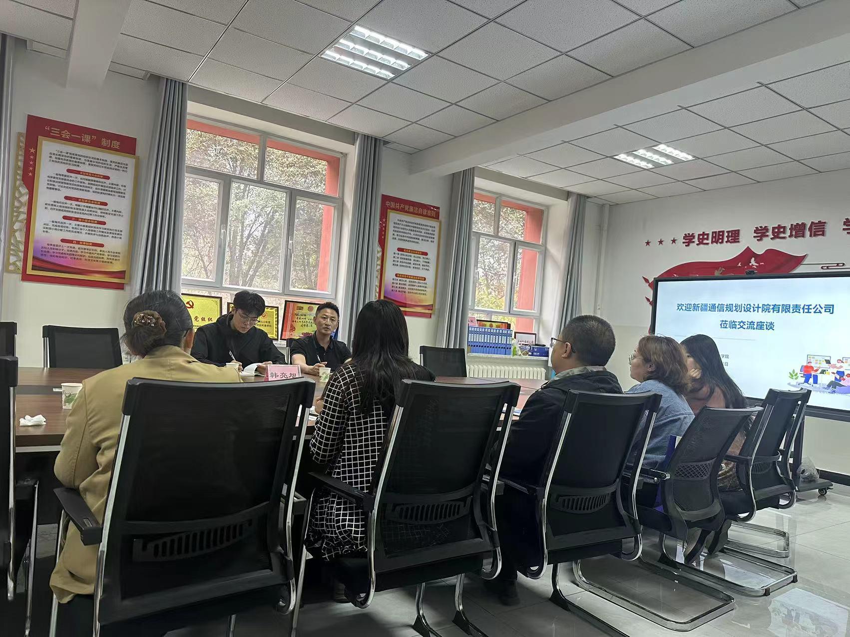 此次校企合作交流会的成功召开,为学院与新疆通信规划设计院有限责任公司的合作奠定了坚实基础,相信在双方的共同努力下,校企合作能取得更好的成果。