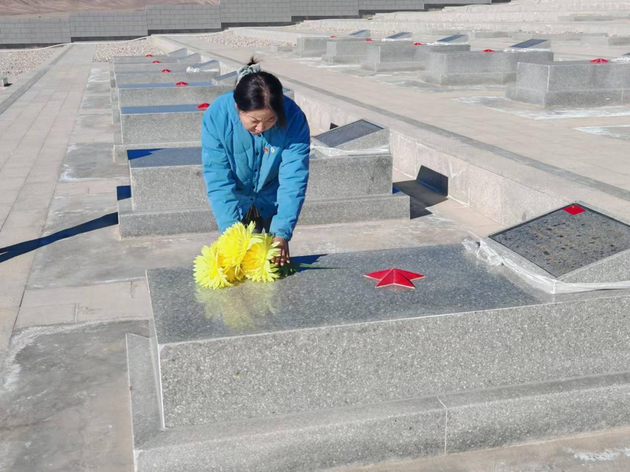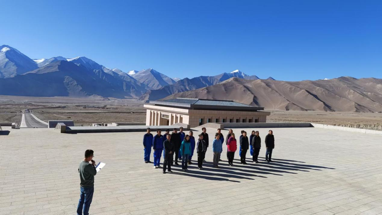 康西瓦烈士陵园位于昆仑山上,海拔4280米,是中国海拔最高的烈士陵园,这里长眠着为保卫祖国领土完整和人民安宁而英勇牺牲的烈士们。活动当天,全体党员在陵园前整齐列队,怀着无比崇敬的心情,向烈士纪念碑敬献了鲜花,并默哀三分钟,表达对革命先烈的深切缅怀和无限敬仰。