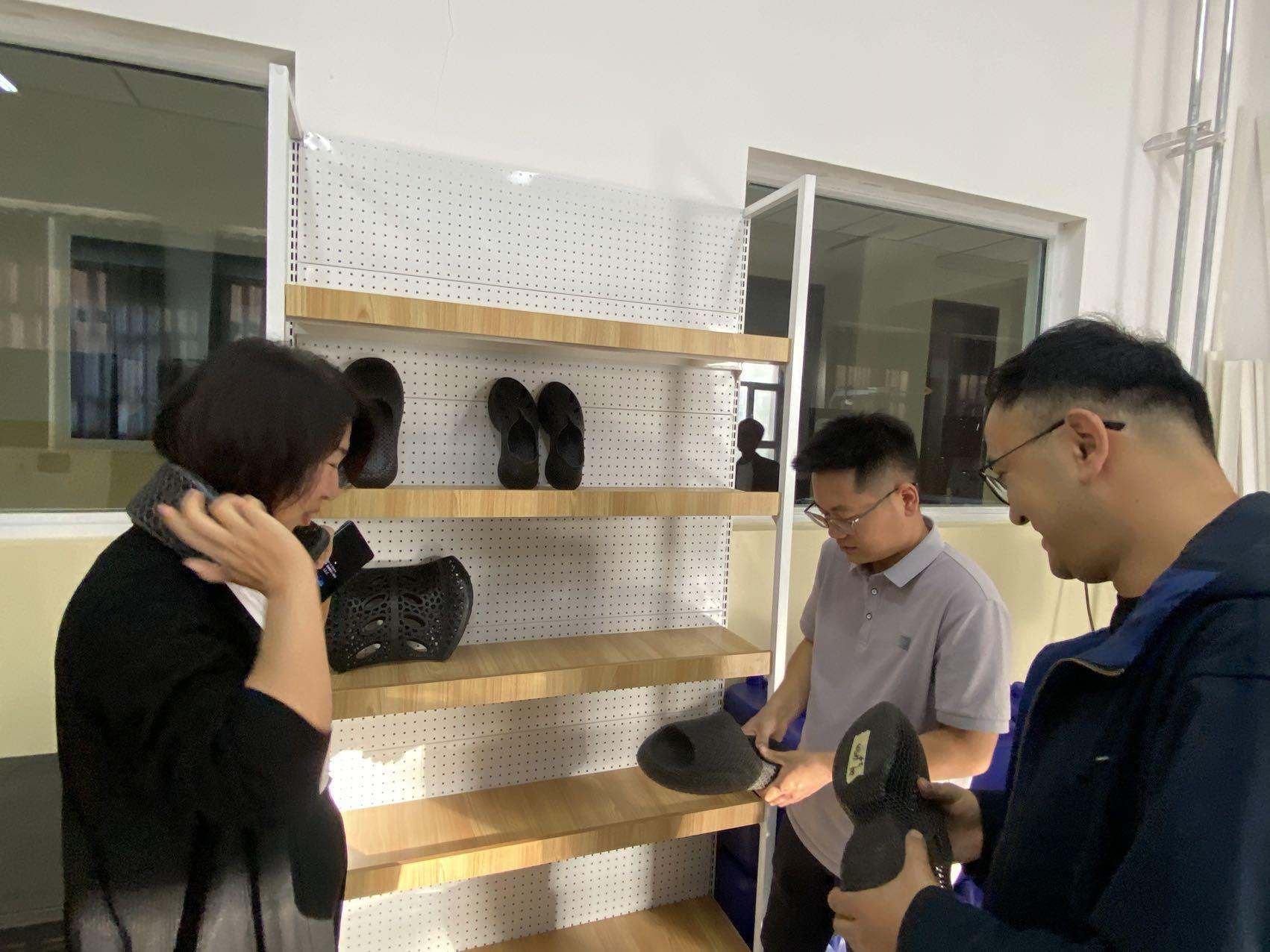 在参观过程中,围绕液体3D打印技术、相关设备的使用操作、打印材料等内容进行了详细了解,并亲身体验了设备打印出的拖鞋、靠枕等产品。同时,双方就3D打印技术在职业教育中的发展趋势、课程设置及师资培训等方面进行了深入探讨。