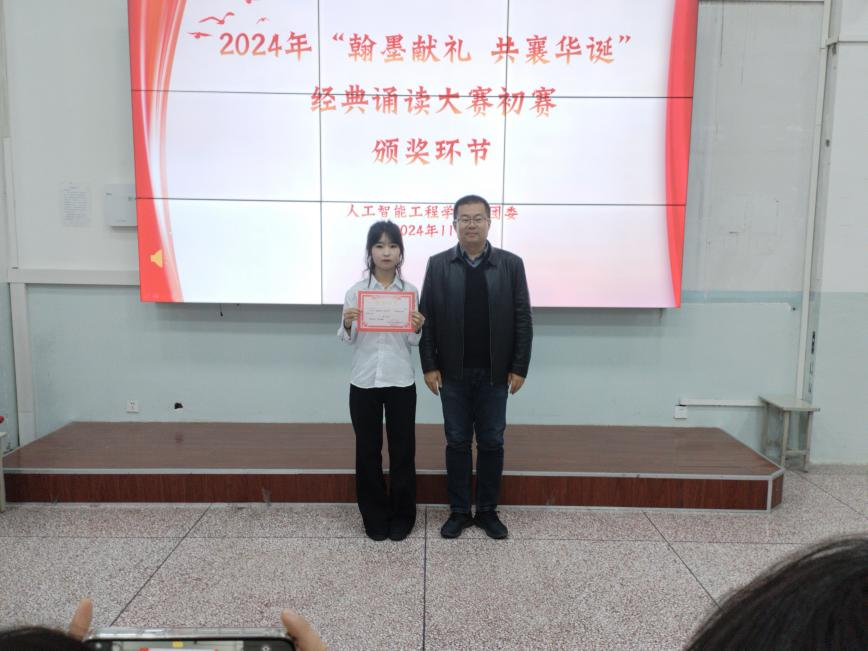 此次初赛不仅丰富了同学们的课余生活,更在校园内营造了传承经典、热爱祖国的浓厚氛围,它让更多同学感受到了中华经典的魅力,激发了同学们传承和弘扬中华优秀传统文化的热情。同时,活动也增强了同学们的民族自豪感和爱国情怀,为校园文化建设注入了新的活力。人工智能工程学院的学子们用自己的方式,为祖国献上了一份独特而深情的礼物。相信在决赛中,选手们会有更精彩的表现,将中华经典进一步发扬光大。