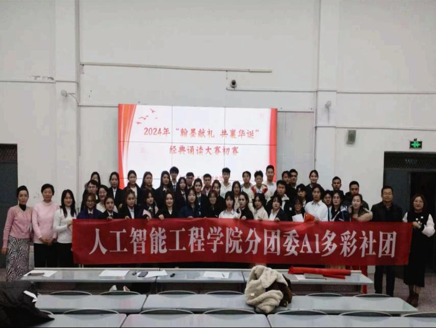 11 月 12 日下午,人工智能工程学院在4 - 1 阶梯教室举办了“翰墨献礼 共襄华诞”经典诵读大赛初赛。此次活动旨在贯彻落实习近平总书记关于国家通用语言文字推广普及工作的重要指示批示精神,深入实施中华经典诵读工程,同时为庆贺祖国 75 华诞献上贺礼。