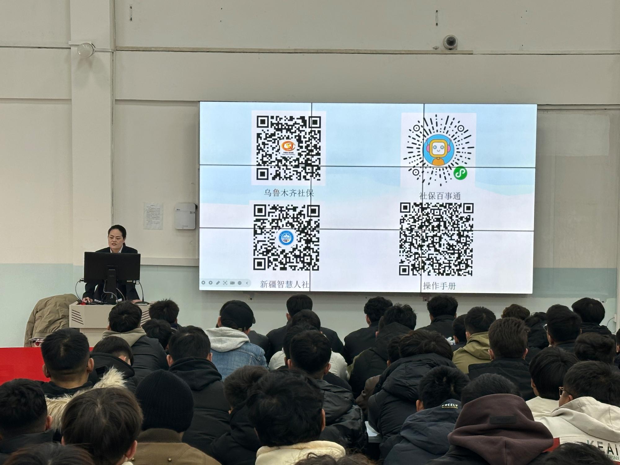 讲座中,乌鲁木齐市社会保险中心米东区分中心党支部书记李晓妹通过专题讲座和手机APP使用教学等形式,为师生提供了一次全面的社保政策解读和服务体验,乌鲁木齐市社会保险中心米东区分中心副主任杜甜子对社会保险政策进行了全面解读,涵盖基本养老保险、医疗保险、工伤保险、失业保险及生育保险等内容。专家们用浅显易懂的语言,结合实际案例,详细阐述了各项保险的作用、参保条件、缴费标准及享受待遇的方法,加深了师生对社保政策的认识。