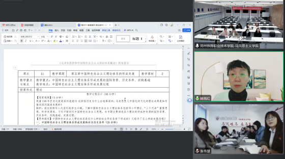 会上,新疆交通职业技术学院张书慧老师和郑州铁路职业技术学院武强老师首先分别介绍参与研讨交流的领导与老师,并在云端亲切问候致意。此次交流研讨会涵盖四项议题,分别为“说课:第五章 中国特色社会主义理论体系的形成与发展”“实践教学模式探索(包括实践案例分享)”“互动讨论:围绕‘如何设计有效且富有吸引力的实践课程环节’”以及“如何利用在线平台有效促进课程实践活动的开展”。