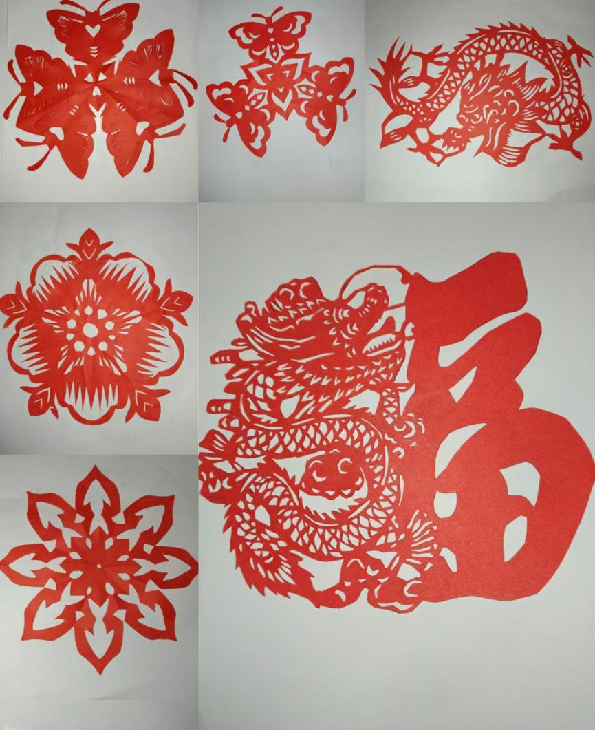 剪纸是我国民间艺术瑰宝,深受喜爱,此次比赛吸引了学生的广泛关注。同学们积极参与,精选出五十多件风格多样的作品,展现了同学们对美好生活的向往和对中国传统文化的情感。经过评审和投票,最终评选出六件优秀作品。