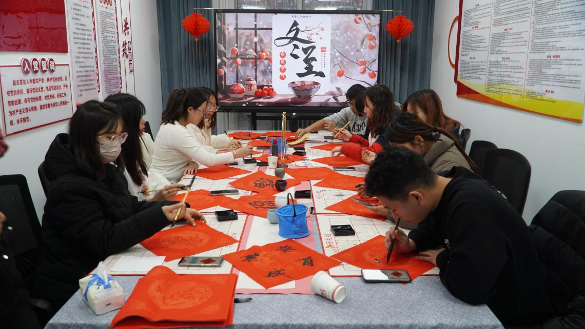 临近冬至,12月18日,人文基础教育学院举办了以“冬至一家亲,福字送祝福”为主题的中华优秀传统文化进学生社区活动,旨在全面提升美育教学质量,丰富第二课堂,并推动一站式服务工作的下沉,提前为师生们送去新春“祝福”,吸引了不少师生前来参加,在学生社区营造祥和、喜庆的节日氛围。